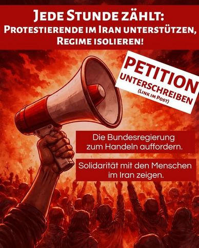 "Seit dem 28. Dezember protestieren Millionen mutiger Menschen im Iran unter Lebensgefahr gegen das bestehende Regime. Diese Proteste sind keine vereinzelten Unruhen - sie sind der klare Ausdruck eines Volkes, das Freiheit, Würde und Grundrechte einfordert.